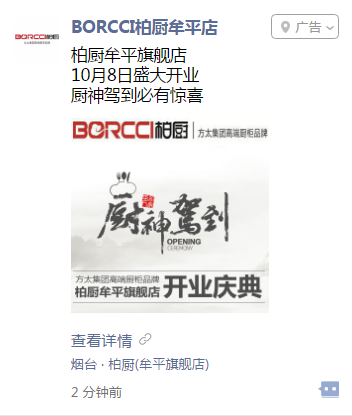空间传媒与BORCCI柏厨牟平店就微信朋友圈广告相关事宜达成合作!